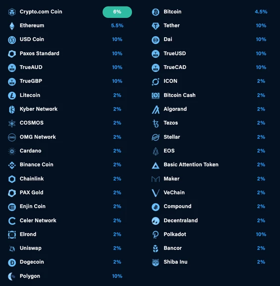 Si tratta di un servizio molto conveniente per tutti coloro che decidono di iniziare ad investire in CRO e altre criptovalute. Per utilizzarlo è necessario comprare CRO oppure una delle tante criptovalute che offrono percentuali di rendita annua dal 2 al 13%.La migliore strategia per ottenere rendite passive dal servizio Earn, prevede di scegliere i token su cui la piattaforma offre i rendimenti più elevati. Fortunatamente per noi, Crypto.com è efficiente e fornisce tutte le percentuali in modo facile da visualizzare. Fondamentalmente, le percentuali qui fornite sono raggiungibili solo dopo aver prima comprato e messo a rendita almeno il token CRO nativo della piattaforma.
