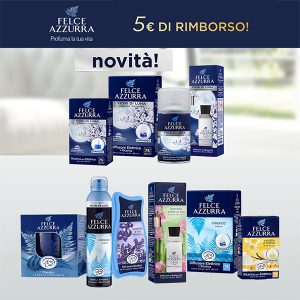 Per partecipare asta acquistare, presso uno dei punti vendita aderenti all’iniziativa, 10 euro di prodotti Felce Azzurra “Aria di casa” a tua scelta tra i seguenti: